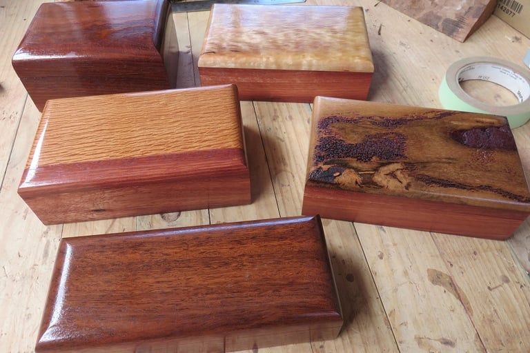 I was then asked to make a small, convenient wedding ring case to hold the rings for the big day. I knew immediately it was a nice item, and I now offer variations on it: single cases for engagement rings or for those who wear just one ring and deeper double ones for those who tend to wear several rings. Every box is individually crafted from start to finish from selected timber that differs in pattern, colour, and texture, making each one unique and special.